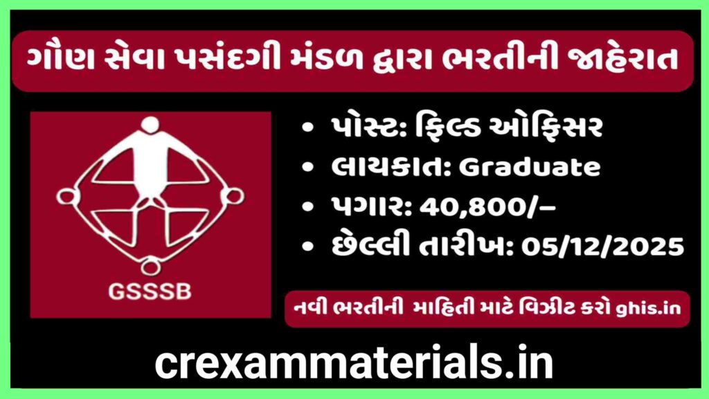 GSSSB Field Officer bharti 2025 – ગુજરાતમાં 20 નવી જગ્યાઓ માટે અરજી શરૂ