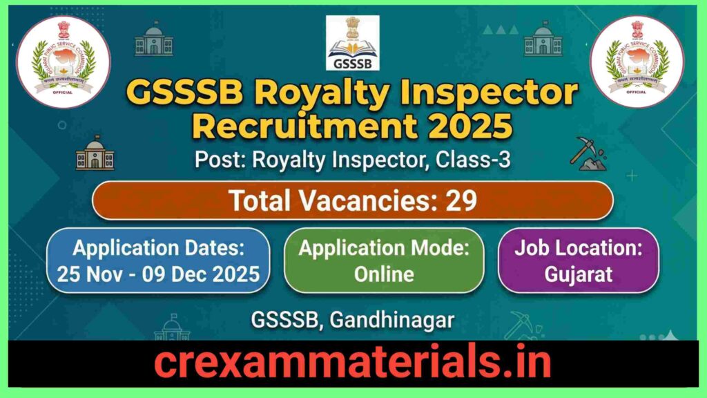 “GSSSB Royalty Inspector Bharti 2025 માટે Online Form, Eligibility, Salary, Exam Pattern, Age Limit, Syllabus અને Full Notification ગુજરાતી માં. 29 જગ્યાઓ માટે Golden Opportunity—Today Apply Now!”